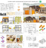 Задача состоит в том, чтобы реконструировать уже имеющийся морально устаревший облик типового детского сада. Новая функция объекта - дом для постоянного проживания значимого контингента - пожилых людей. Для обеспечения их наибольшего комфорта и коммуникации на 1-м этаже расположены помещения для разного рода активностей, а также медобслуживание. Было решено разнообразить монотонный протяженный объем корпусов более компактными поперечными членениями. Яркие акценты, а также элементы вертикального озеленения на фасадах должны способствовать психологической разгрузке проживающих здесь людей.